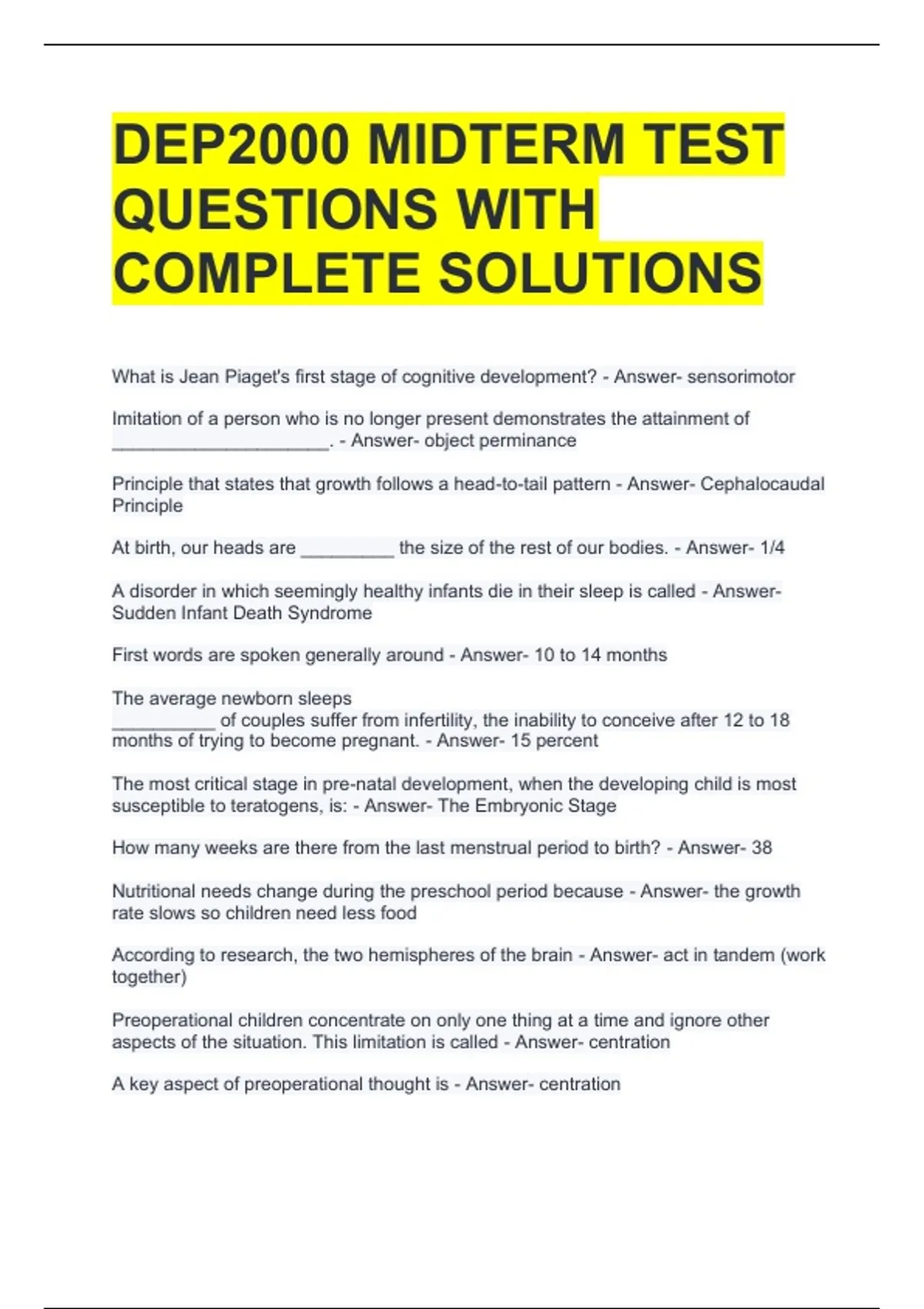 Bundle For DEP 2000 MIDTERM TEST QUESTIONS WITH CORRECT ANSWERS