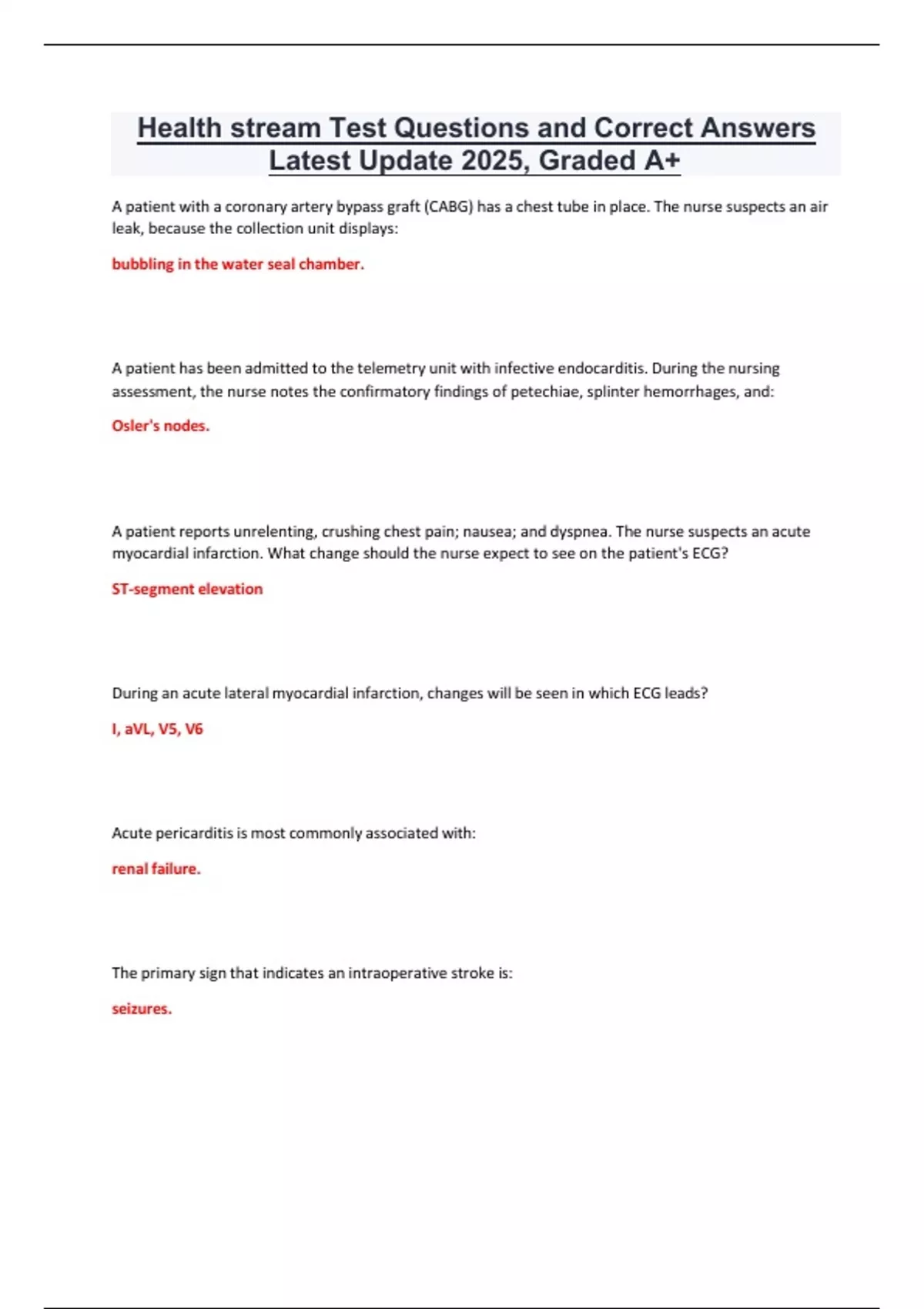 HEALTH STREAM TESTWITHACTUAL CORRECT QUESTIONSAND VERIFIED DETAILED ANSWERS LATEST 2025 ALREADY GRADED A+