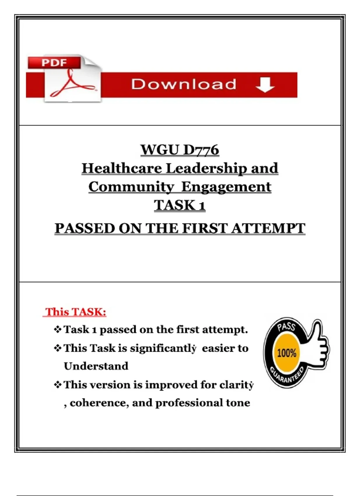 Healthcare Leadership and Community Engagement – D776 – Task 1 & Task 2 – Final Exam Questions and Correct Answers – Complete Bundle – Western Governors University