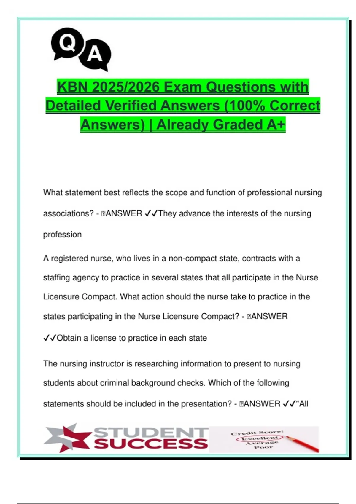 KBN Jurisprudence Exam 2025/2026 — Verified Questions and Answers | Kentucky Nursing Laws, Licensure, Scope of Practice & Discipline