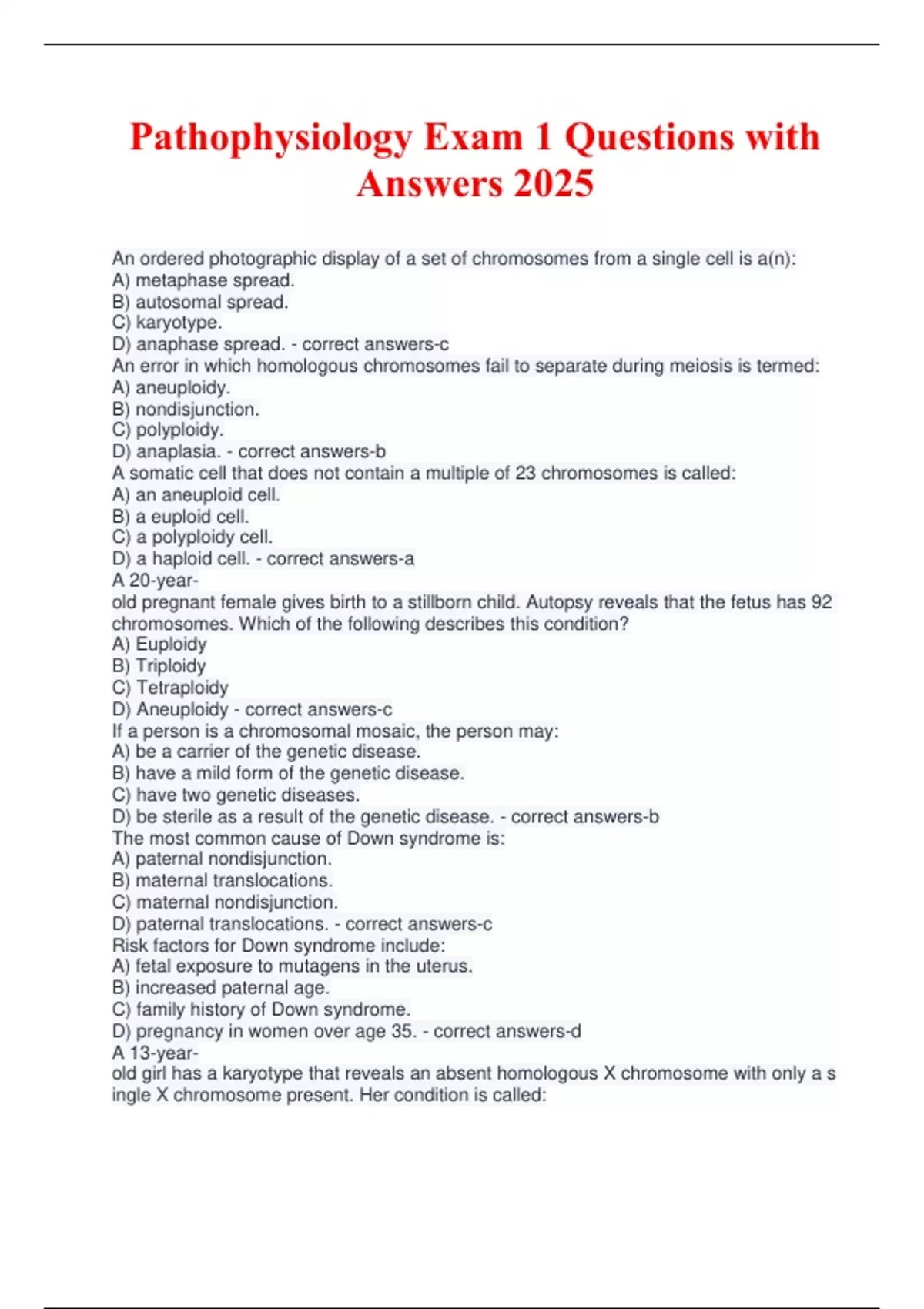 Pathophysiology C805 WGU based of study guide provided by Pam Borsum Questions and Answers 2025