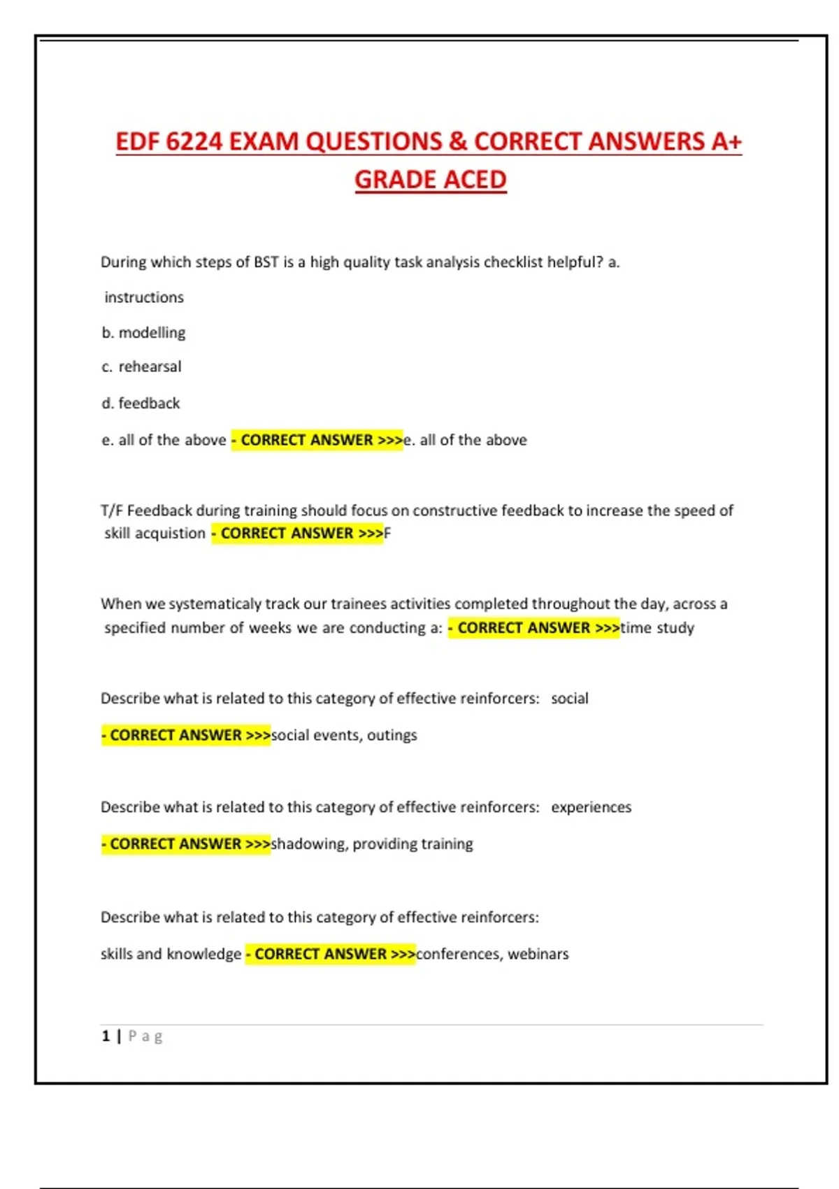 EDF 6224 BUNDLED EXAMS WITH COMPLETE SOLUTIONS PACKAGE DEAL