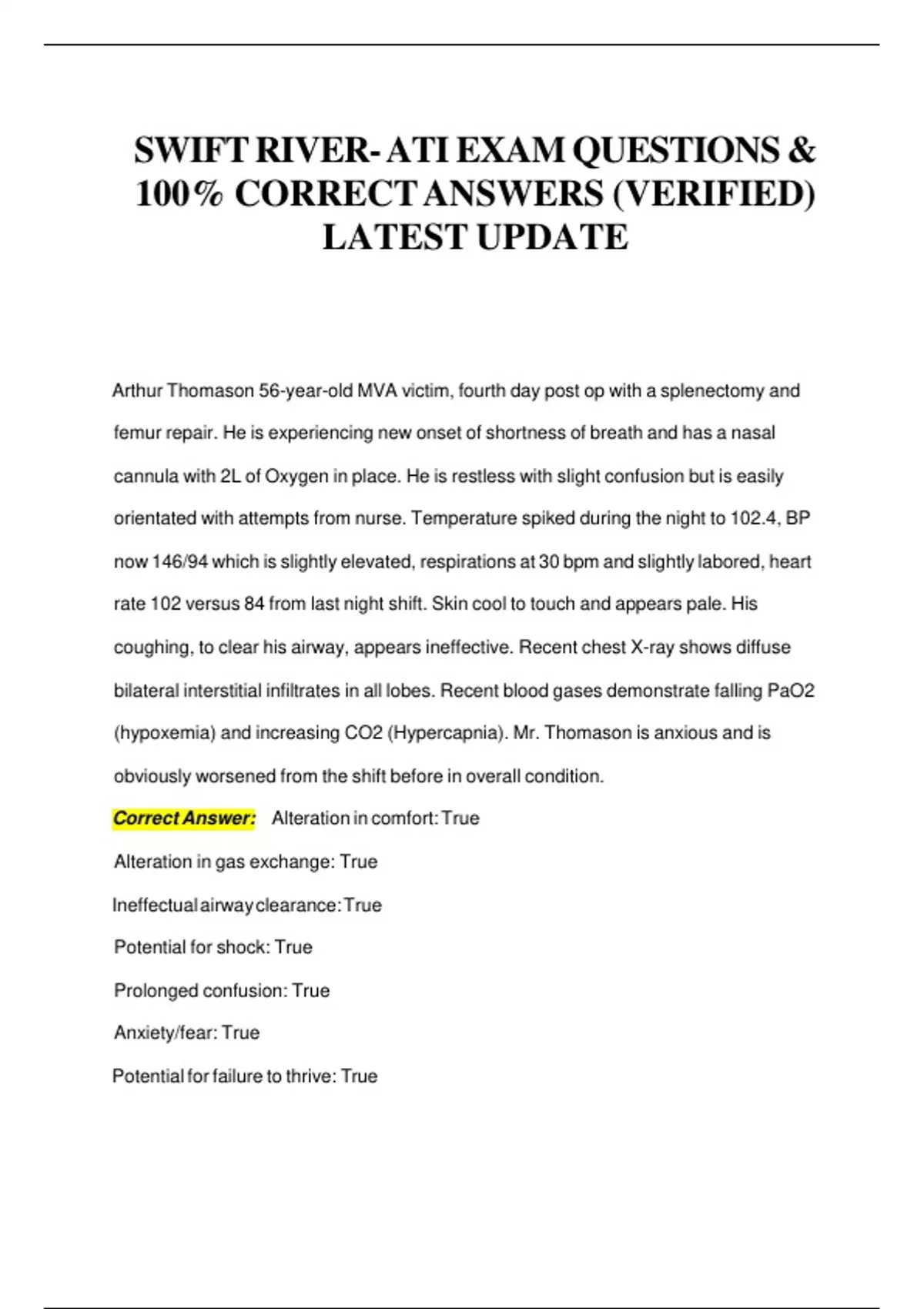 SWIFT RIVER- ATI EXAM QUESTIONS & 100% CORRECT ANSWERS (VERIFIED) LATEST UPDATE