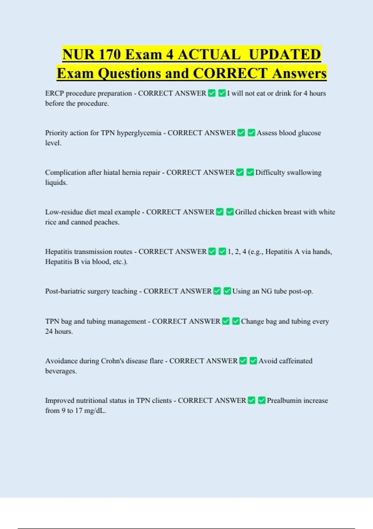 NUR 170 Exam 4 ACTUAL UPDATED Exam Questions and CORRECT Answers