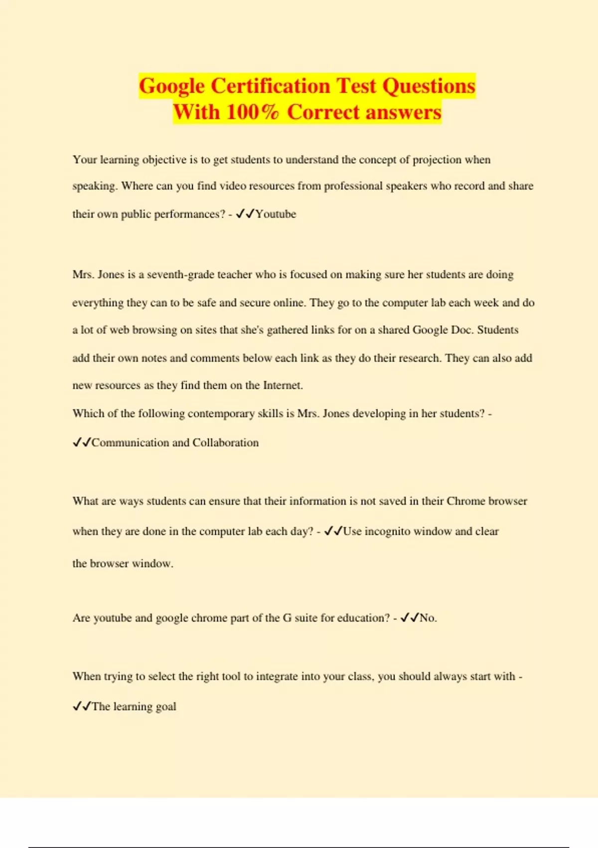 Google Certification Test Questions with Correct Verified Answers