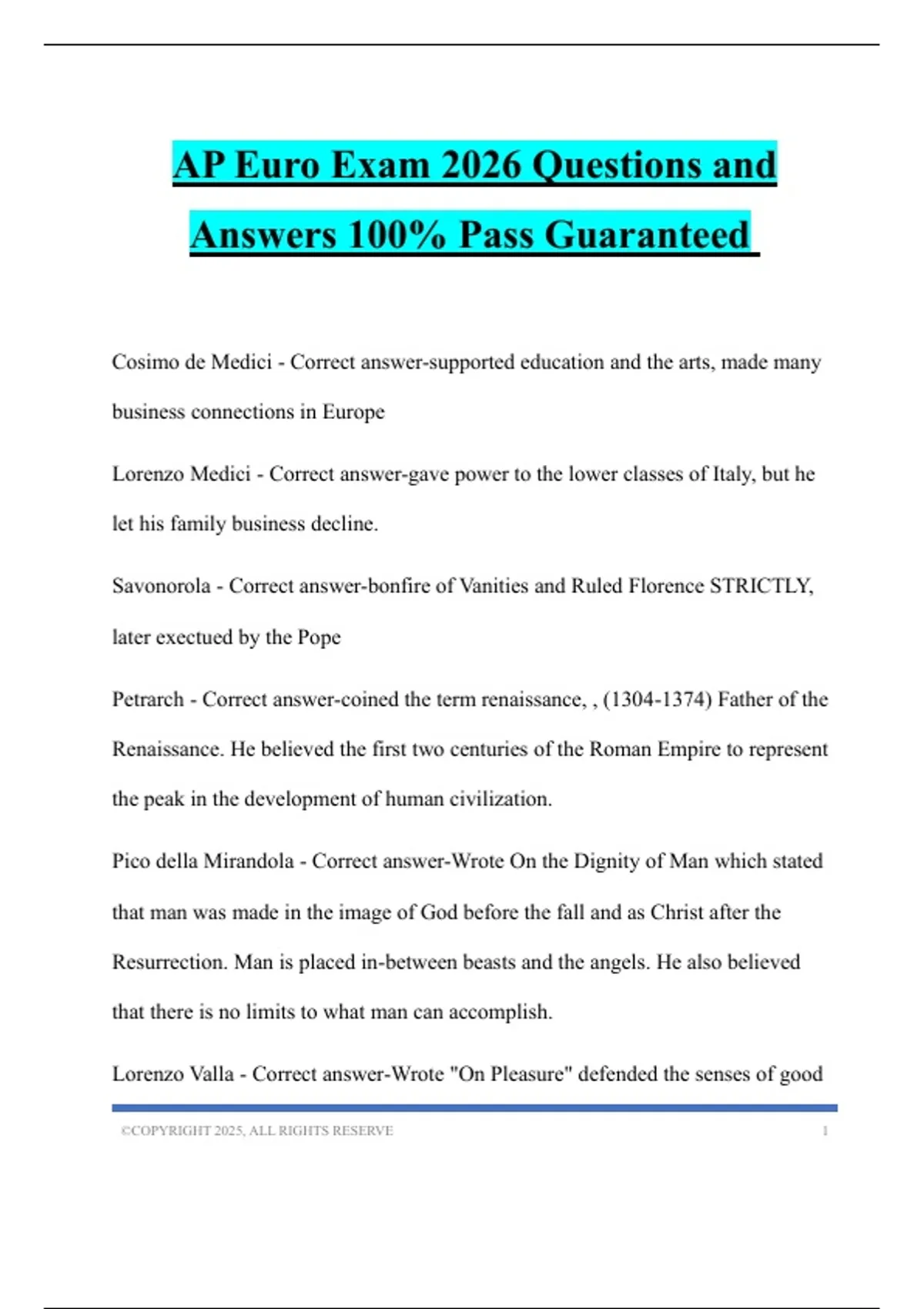 Ap european history Bundled Exams 2026 Questions and Answers 100% Pass Guaranteed