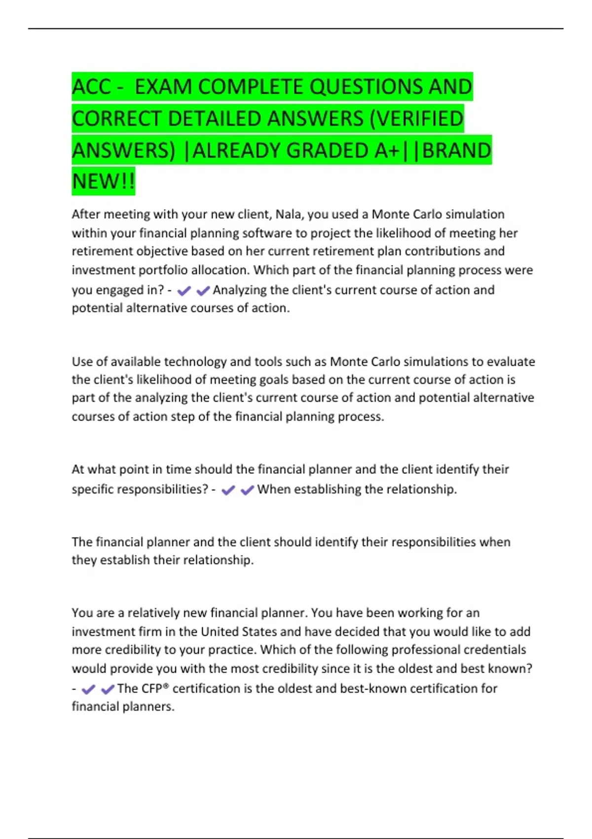 ACC - EXAM COMPLETE QUESTIONS AND CORRECT DETAILED ANSWERS (VERIFIED ANSWERS) |ALREADY GRADED A ||BRAND NEW!!