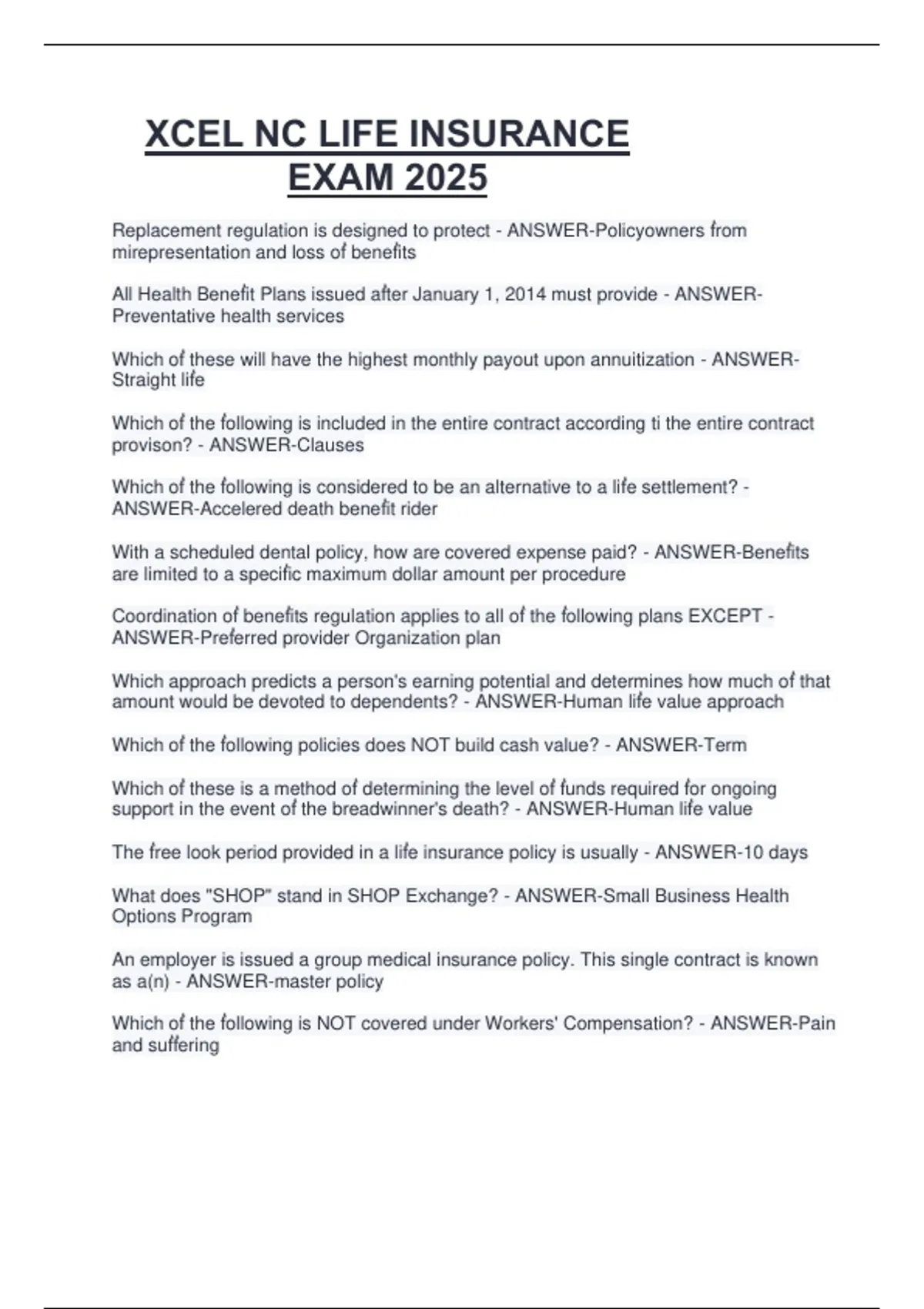 Package deal for NC LIFE AND HEALTH INSURANCE NC LIFE AND HEALTH INSURANCE STUDY QUESTIONS AND ANSWERS 2025/2026