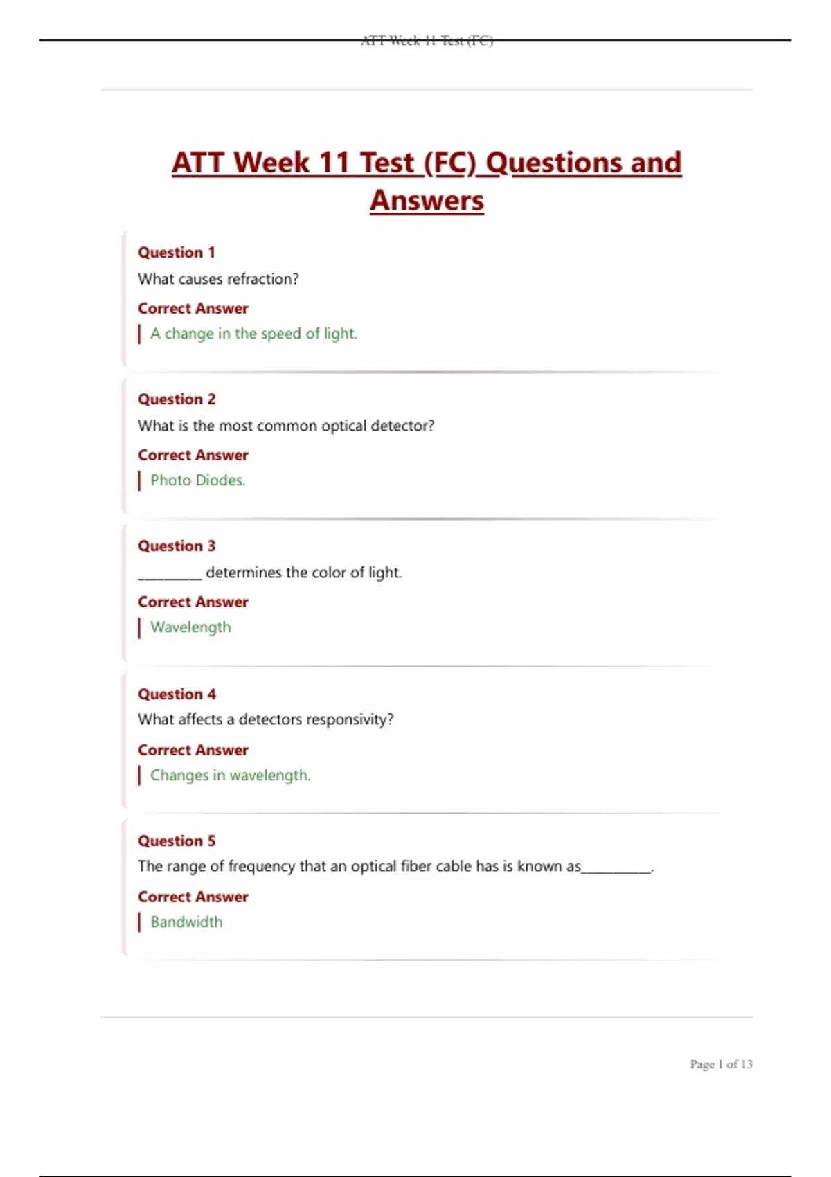 ATT Week 11 Test (FC) Questions and Answers