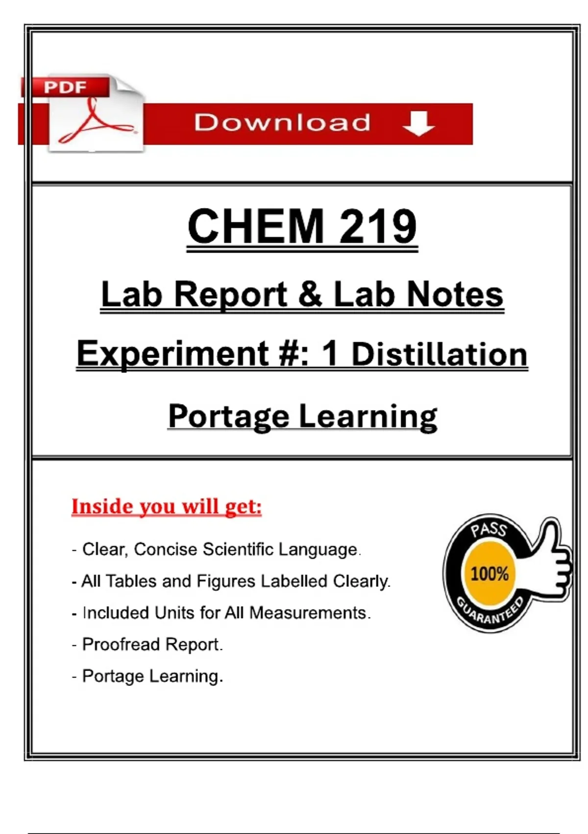 (Lab Report Experiments 1-8) CHEM 219 – Principles of Organic Chemistry – Portage Learning