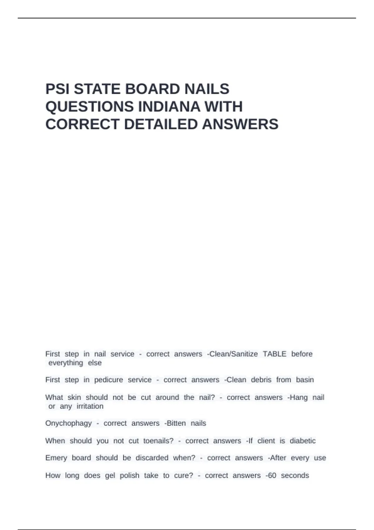 PSI STATE BOARD NAILS QUESTIONS INDIANA WITH CORRECT DETAILED ANSWERS