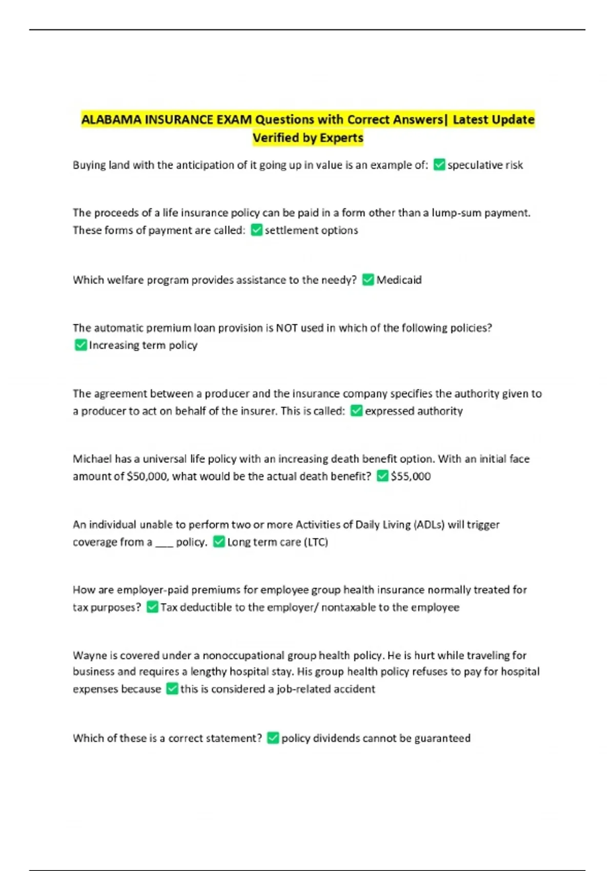 BUNDLE-::Alabama Life Insurance Exams with Correct Answers