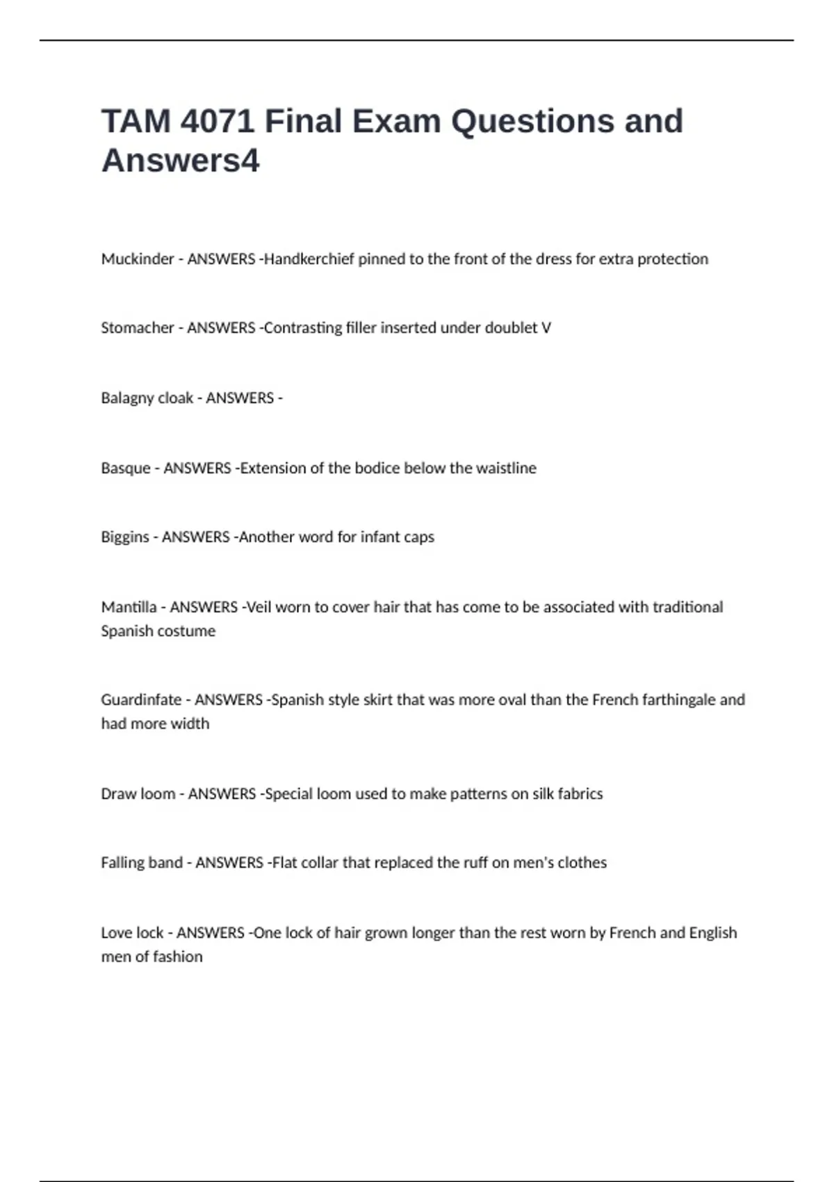 TAM EXAM (ch 14-16) QUESTIONS AND ANSWERS