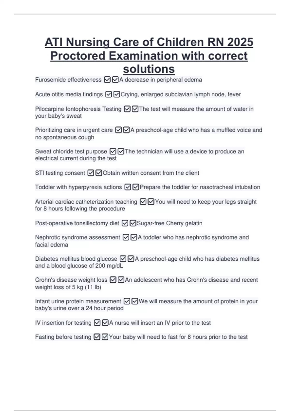 ATI Nursing Care of Children Proctored exam with correct answers provided