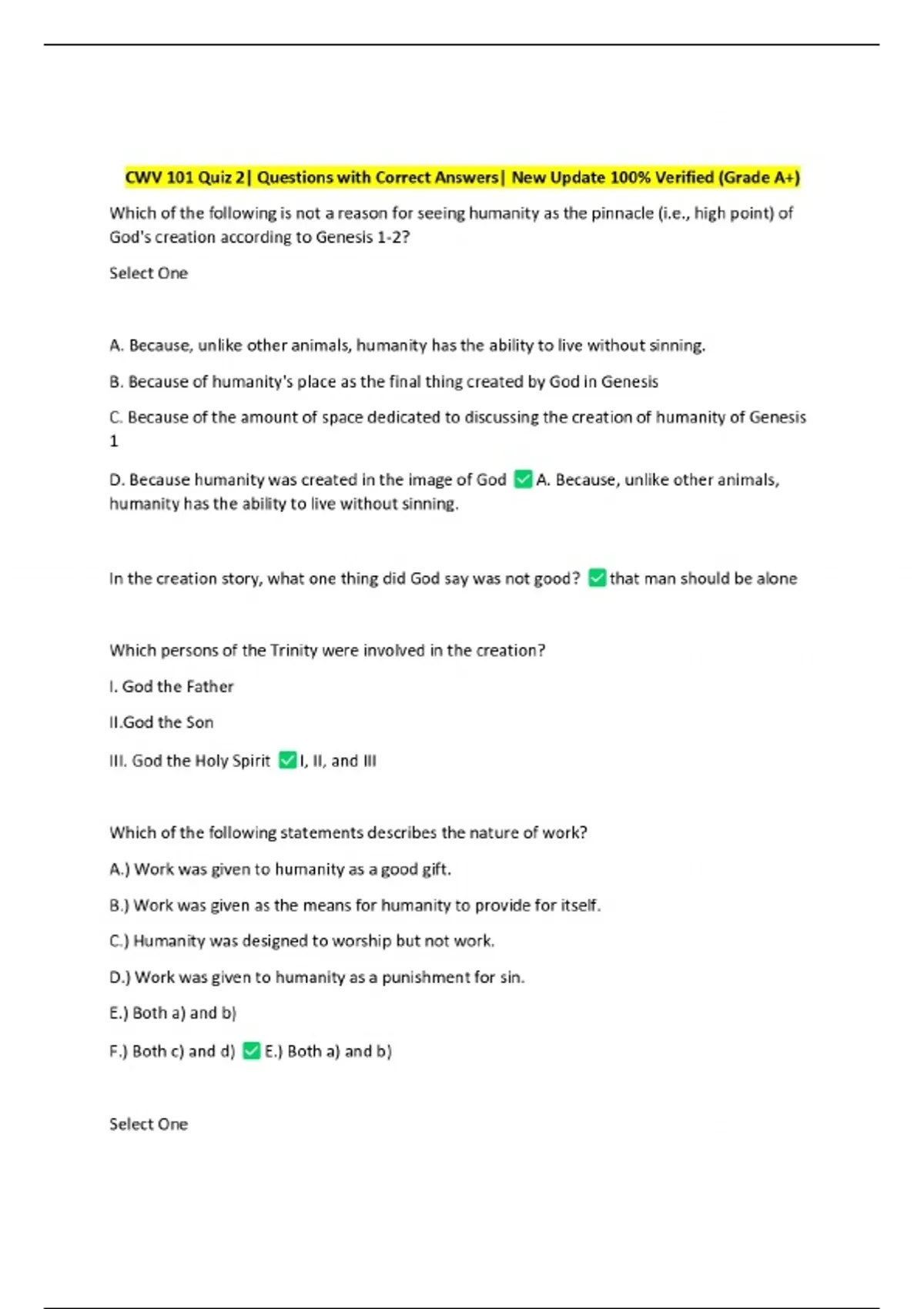 CWV-101 Topic 2 Questions with Correct Answers| New Update 100% Verified (Grade A+) 7 Exam (elaborations) CWV 101 Exam Questions with Correct Answers| New Update 100% Verified (Grade A+) 8 Exam (elaborations) CWV 101 Final Exam GCU Questions with Correct Answers| New Update 100% Verified (Grade A+) 9 Exam (elaborations) CWV 101 Final Exam Questi