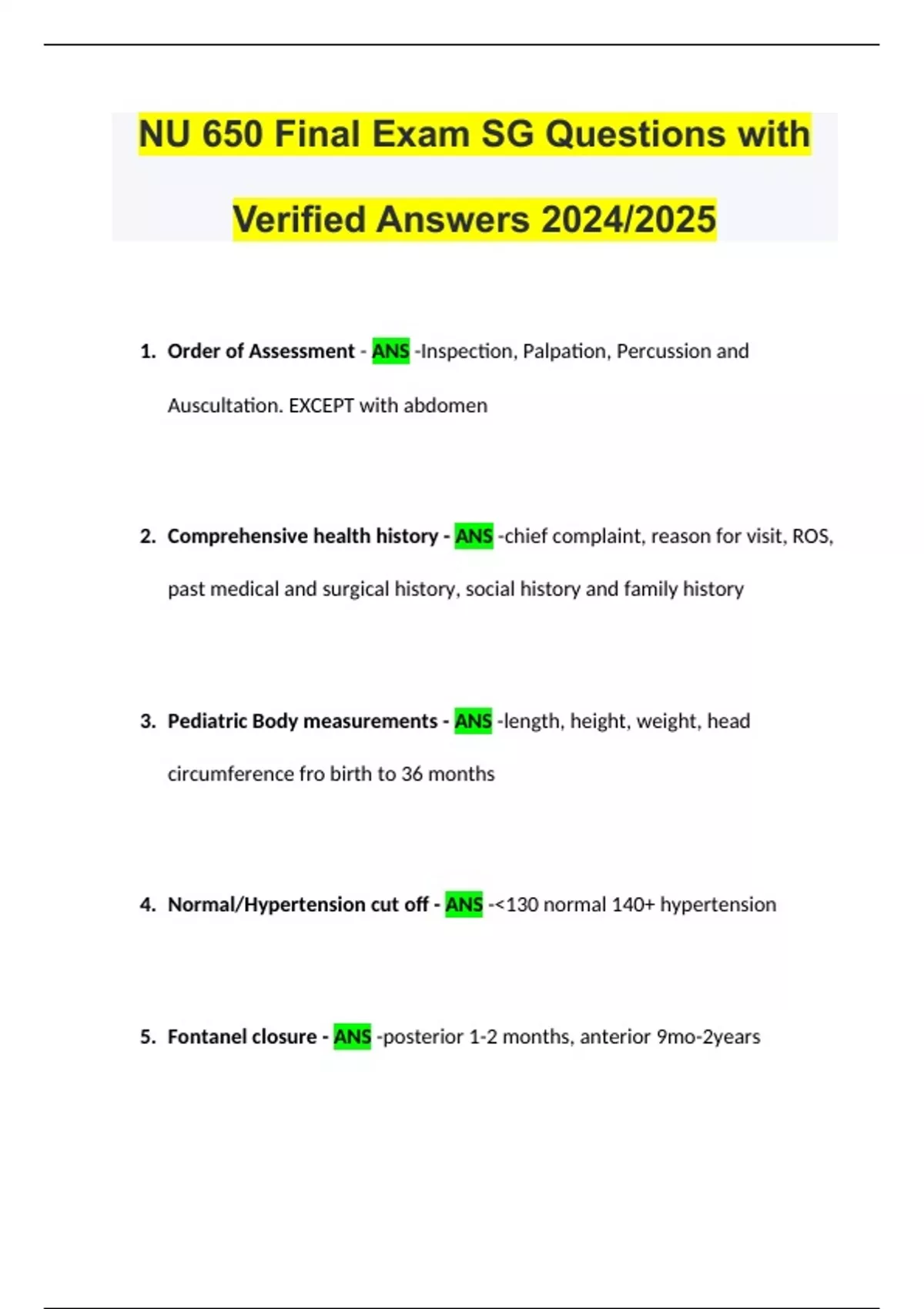 NU650 Exam 1 PLUS Midterm & FINAL Exam (Latest Update 2025 / 2026) Advanced Health Assessment | BUNDLE