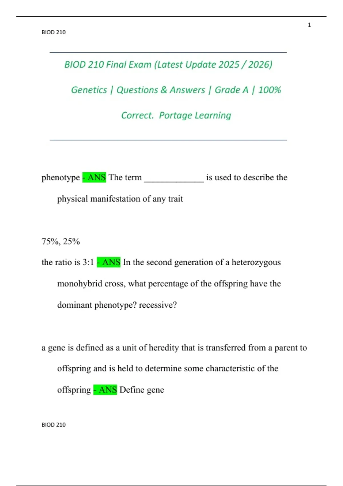 STUDENT DEAL 50% OFF!! BIOD 210 Module 1, 2, 3,4, 5, 6 & 7 PLUS Final Exam (Latest Update 2025 / 2026) Genetics | Questions & Answers |