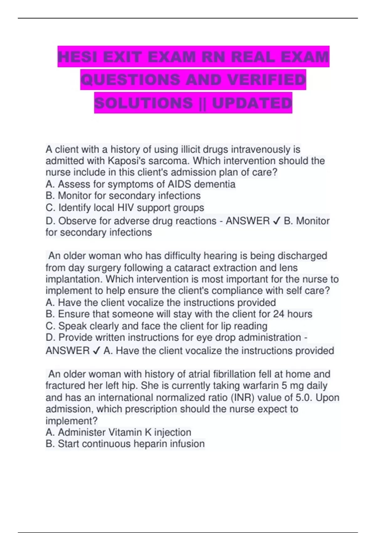 HESI Exit v1-v6 (NGN style Qs & Case studies) TEST STUDY GUIDE 2025/2026 QUESTIONS BANK AND CORRECT DETAILED ANSWERS WITH RATIONALES || 100% GUARANTEED PASS RECENT VERSION || HESI EXIT NGN, HESI RN Exit Exam || PN HESI EXIT / HESI PN EXIT FINAL EXAM STUDY GUIDE 2025/2026 ACCURATE QUESTIONS BANK AND VERIFIED CORRECT SOLUTIONS
