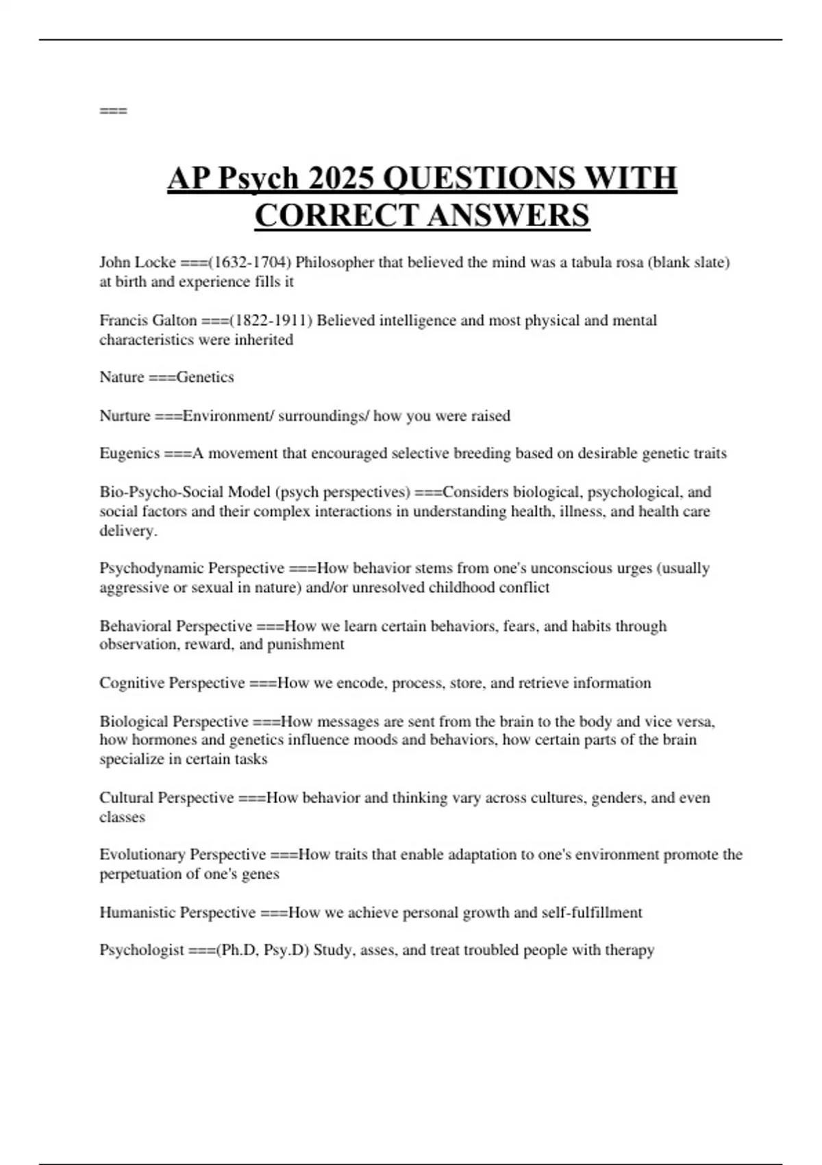 AP Psych 2025 QUESTIONS WITH CORRECT ANSWERS