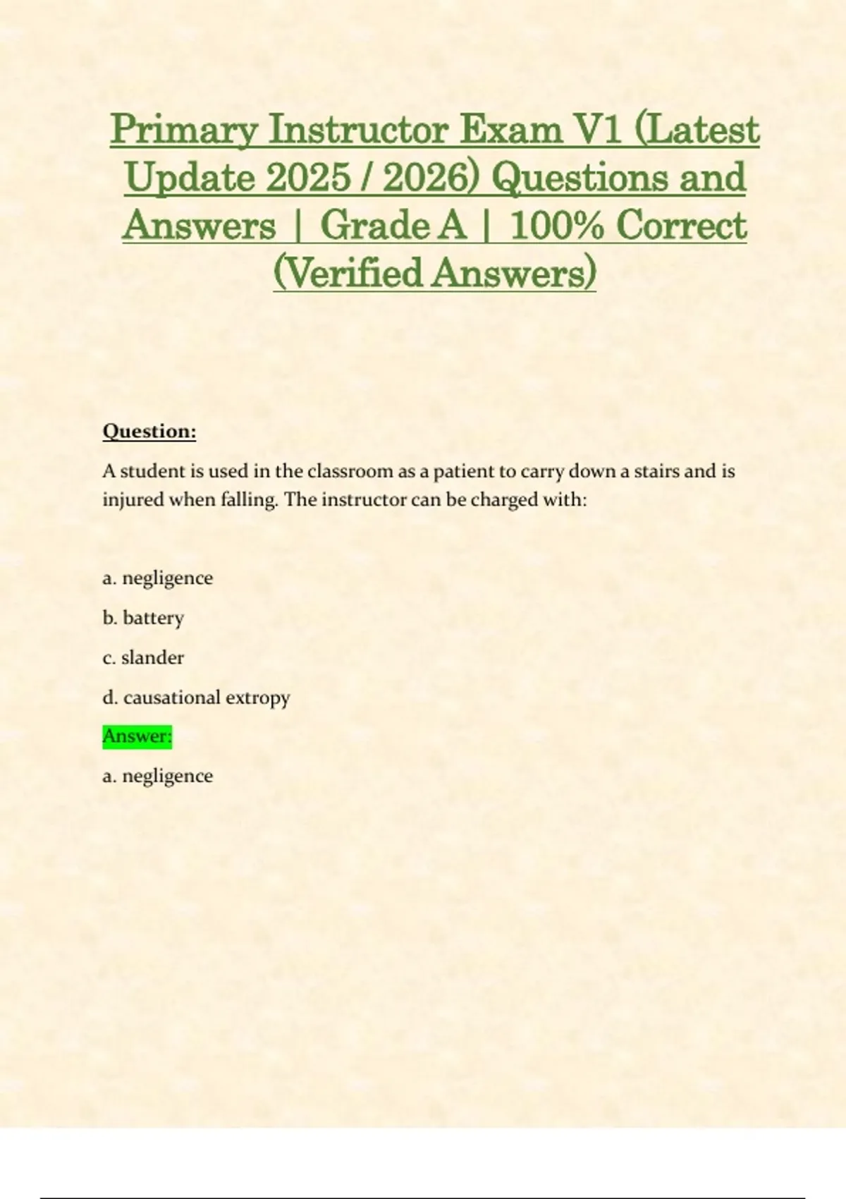 Primary Instructor V1 & V2 Exams (Latest 2025 / 2026 Updates STUDY BUNDLE PACKAGE WITH SOLUTIONS ) Questions and Answers | Grade A | 100% Correct (Verified Answers)