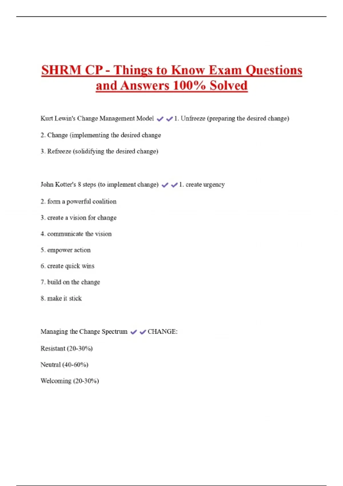 1 Exam (elaborations) SHRM CP - Things to Know Exam Questions and Answers 100% Solved 2 Exam (elaborations) SHRM CP – Organization Exam Questions with Complete Solutions 3 Exam (elaborations) SHRM-CP Practice Exam Questions and Answers 100% Solved 4 Exam (elaborations) Practice Test- SHRM CP Exam Questions and Answers Graded A+ 5 Exam (elaborat