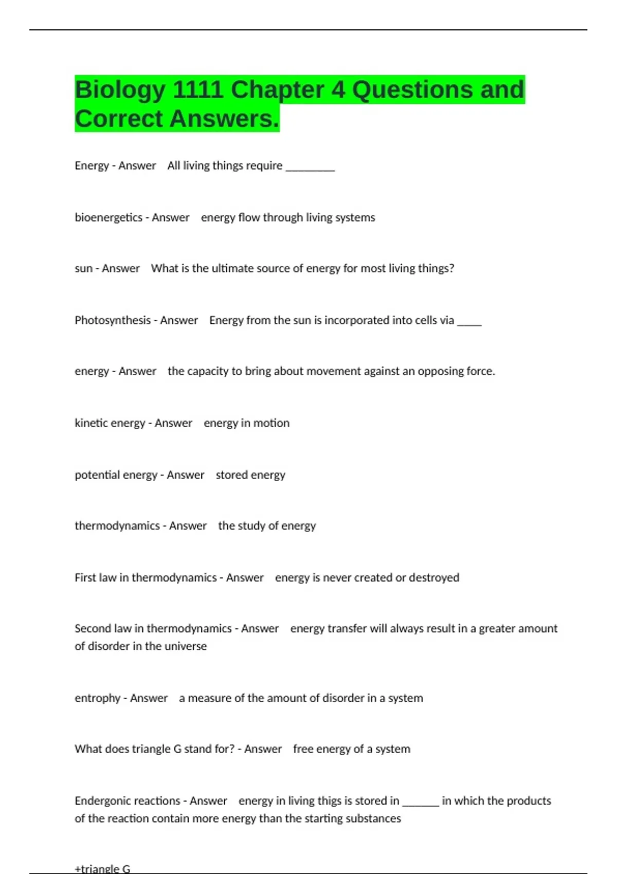 1 Exam (elaborations) Biology 1111 Midterm Exam And 100% Correct Answers 2025 Edition. 2 Exam (elaborations) Biology 1111 FINAL EXAM REVIEW AND 100% ACTUAL ANSWERS 2025 UPDATE. 3 Exam (elaborations) Biology 1111 Exam 1 ~ Study Guide (Ch. 1-3) Questions () All Solved Correct Rated A+.
