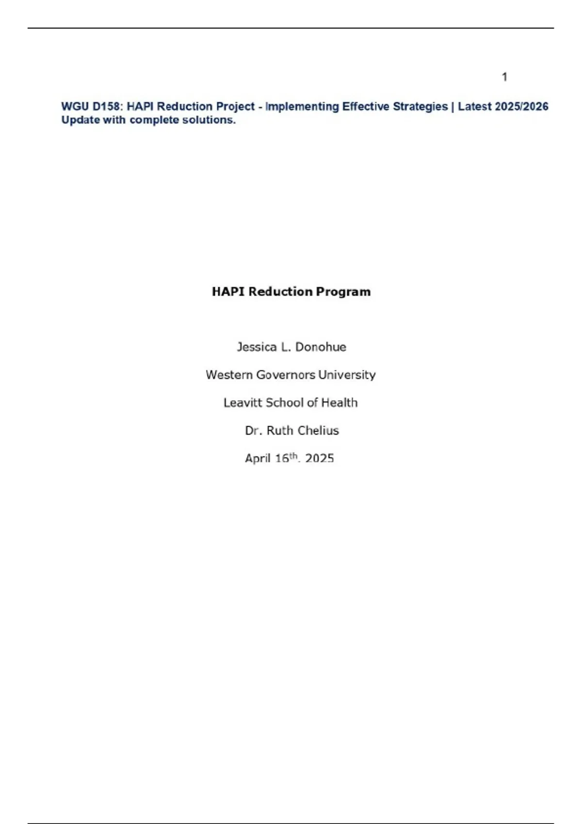 WGU D158: HAPI Reduction Project - Implementing Effective Strategies | Latest 2025/2026 Update with complete solutions.