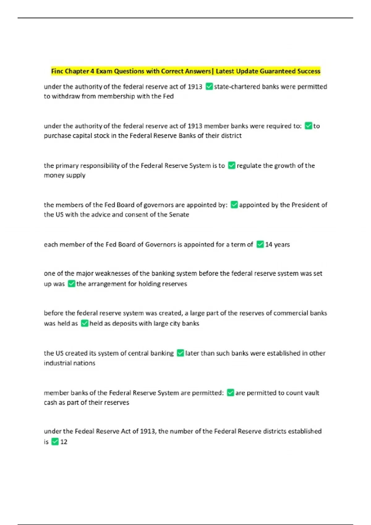 Finc Chapter 4 Exam Questions with Correct Answers| Latest Update Guaranteed Success 2 Exam (elaborations) FINC Exam 1 Questions with Correct Answers| Latest Update Guaranteed Success 3 Exam (elaborations) FINC Exam 2 Questions with Correct Answers| Latest Update Guaranteed Success 4 Exam (elaborations) FINC Exam 2 Questions with Correct Answers