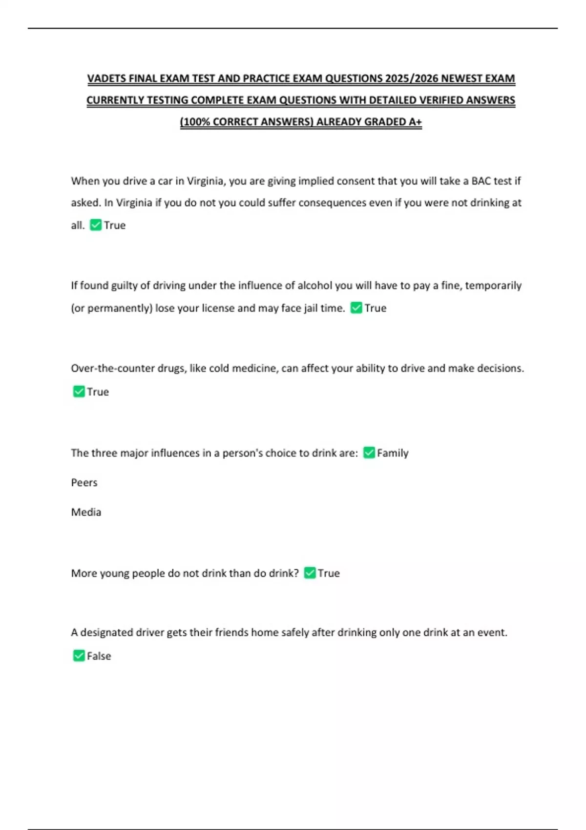 VADETS FINAL EXAM TEST AND PRACTICE EXAM QUESTIONS 2025/2026 NEWEST EXAM CURRENTLY TESTING COMPLETE EXAM QUESTIONS WITH DETAILED VERIFIED ANSWERS (100% CORRECT ANSWERS) ALREADY GRADED A+ 2 Exam (elaborations) VADETS Final Exam (Non-Picture) Exam Questions with Correct Answers| Latest Update Guaranteed Success 3 Exam (elaborations) VADETS final ex