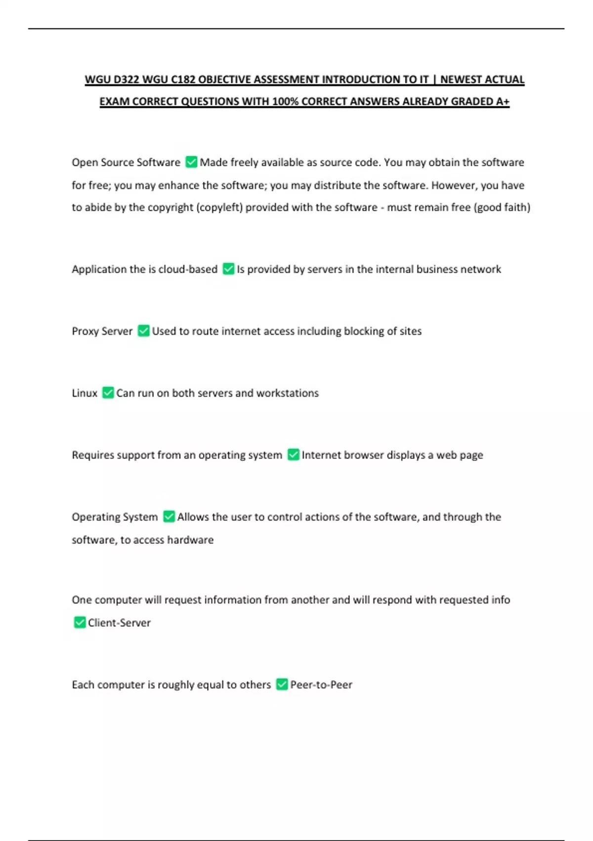 WGU D322 OA Retake Exam Questions and Answers| New Update with 100% Correct Answers 3 Exam (elaborations) WGU D322 Exam Questions and Answers| New Update with 100% Correct Answers 4 Exam (elaborations) WGU D322 Introduction to IT Exam Questions and Answers| New Update with 100% Correct Answers 5 Exam (elaborations) WGU D322 WGU C182 OBJECTIVE AS