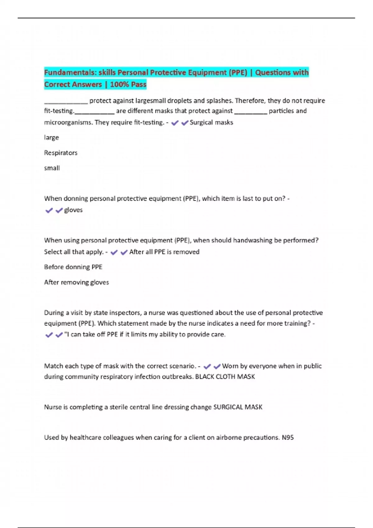 Fundamentals: skills Personal Protective Equipment (PPE) | Questions with Correct Answers | 100% Pass