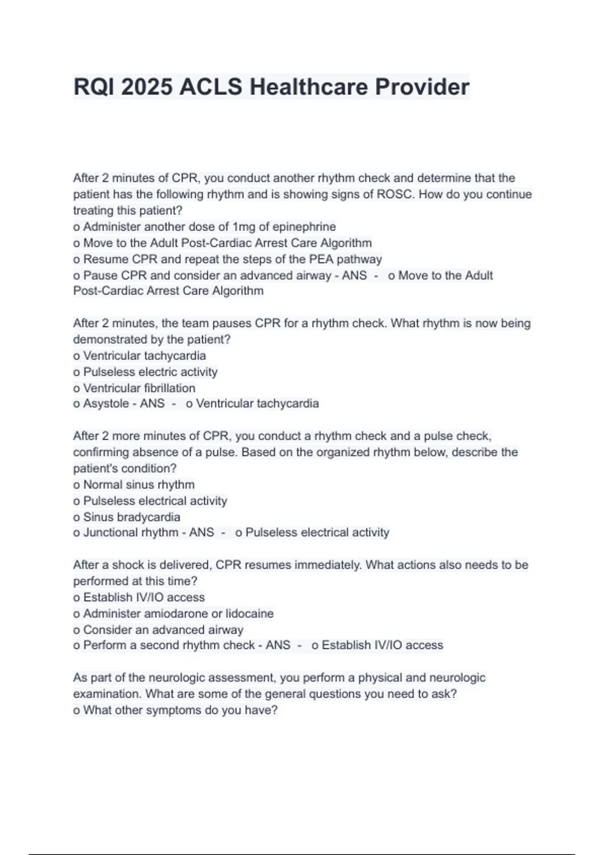 RQI ACLS Healthcare Provider 2025/2026 ( A+ GRADED 100% VERIFIED)