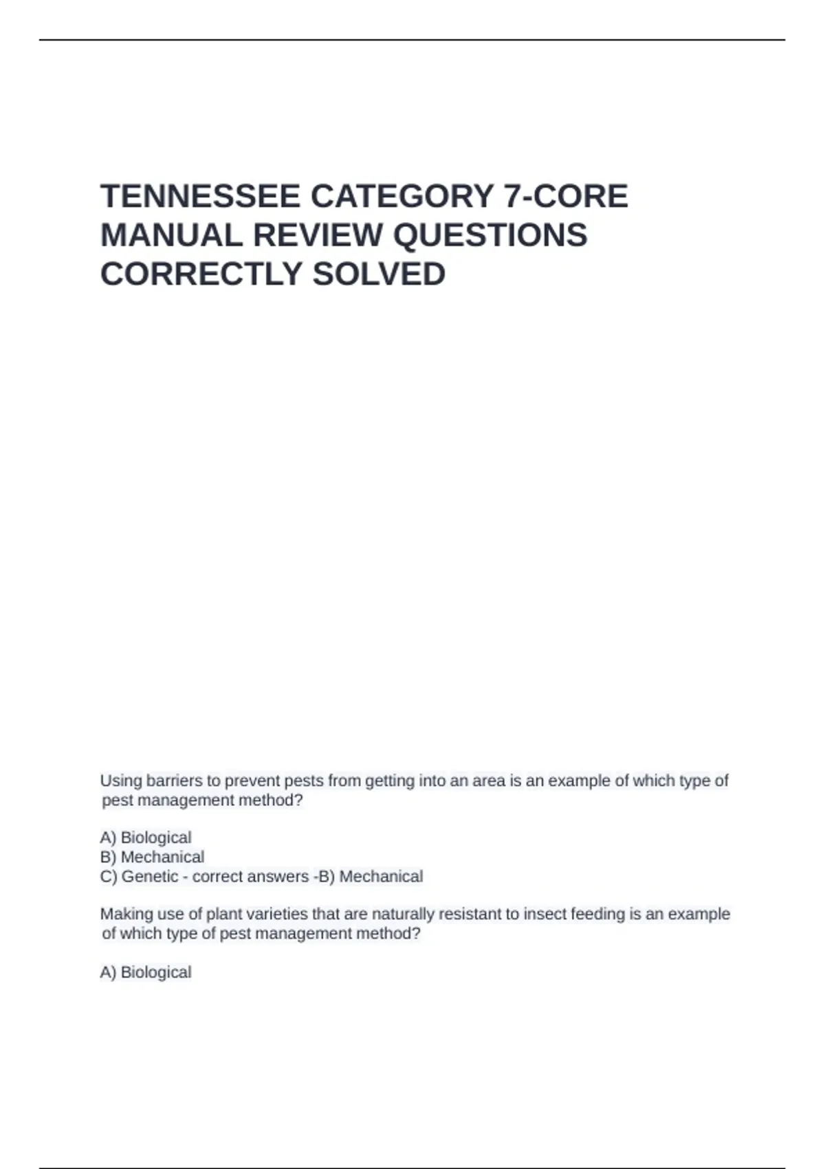 Tennessee Category 7-Core Manual Review Questions correctly solved