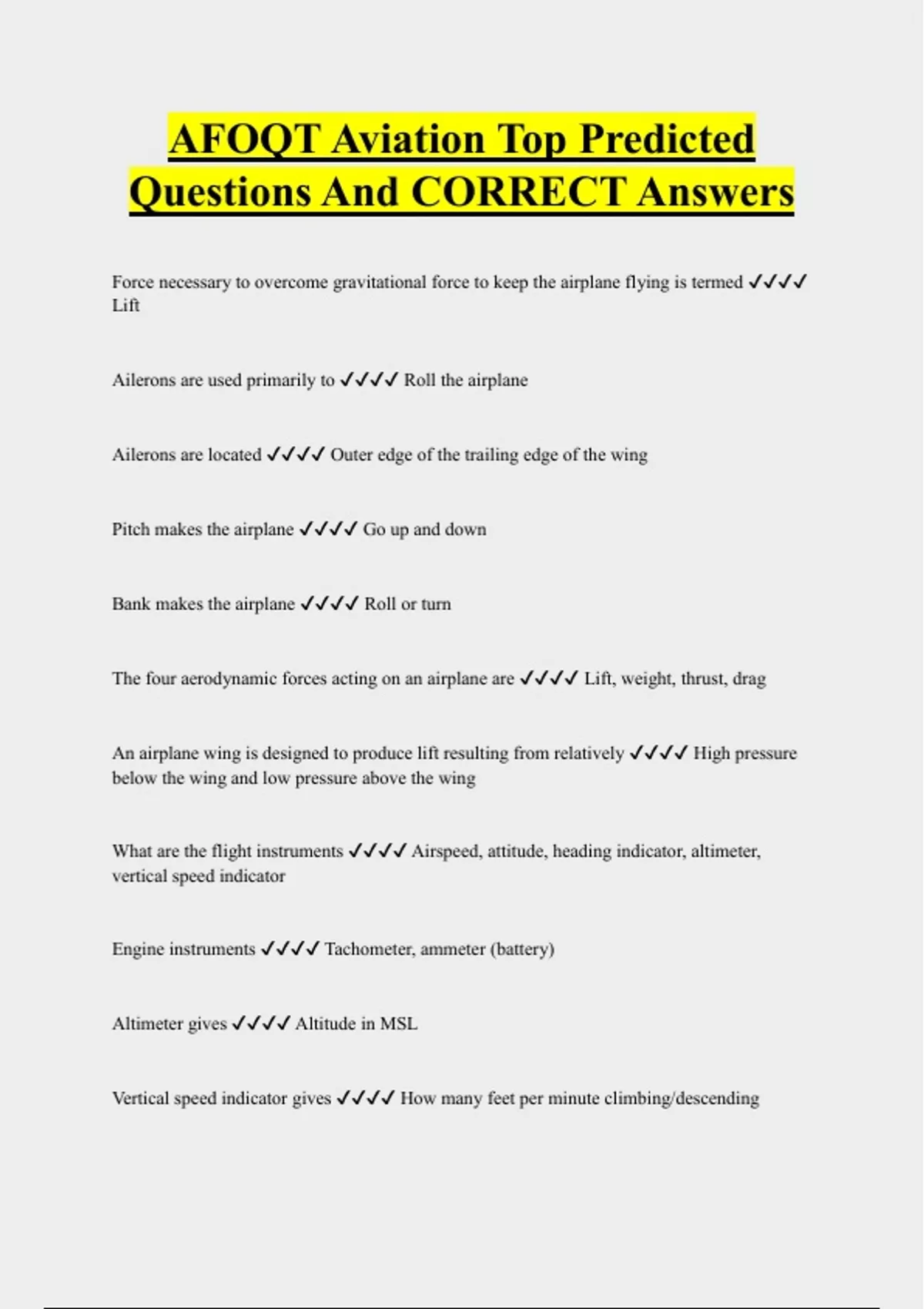AFOQT Study Guide ( Aviation Information) UPDATED ACTUAL Exam Questions and CORRECT Answers