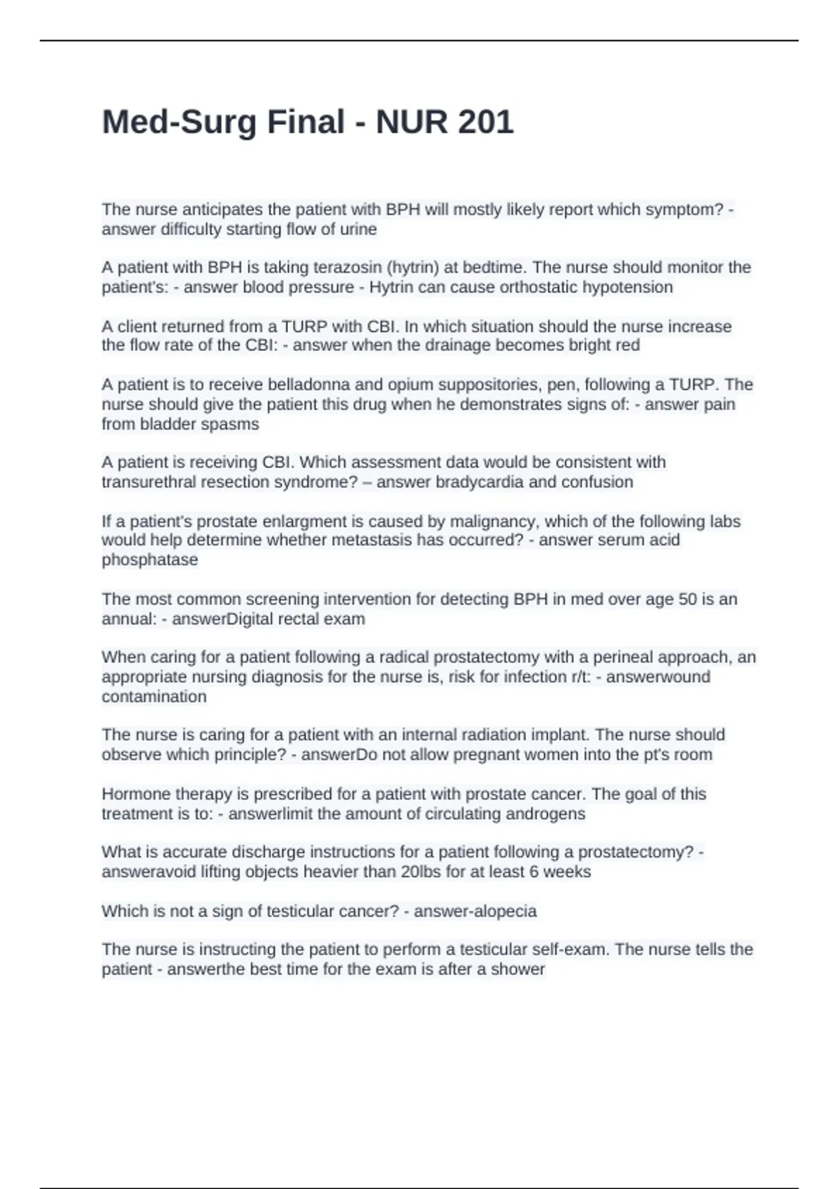 Exam (elaborations) NURSING 201 FINAL EXAM QUESTIONS AND ANSWERS FULLY SOLVED Exam (elaborations) Nursing 201 Exam 3 Questions with Correct Answers Exam (elaborations) Nursing 201 exam 2 practice questions and answers Exam (elaborations) Nursing 201 exam 1 questions and answers Exam (elaborations) Nursing 201 exam -2. questions and answers