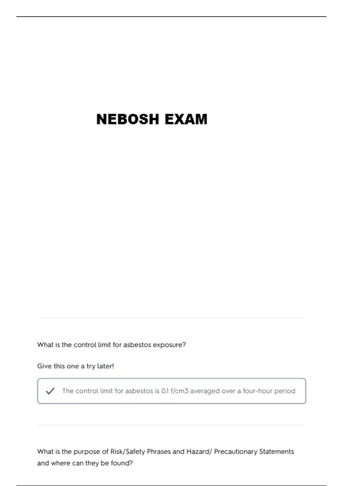 NEBOSH REVISION QUESTIONS AND VERIFIED ANSWERS