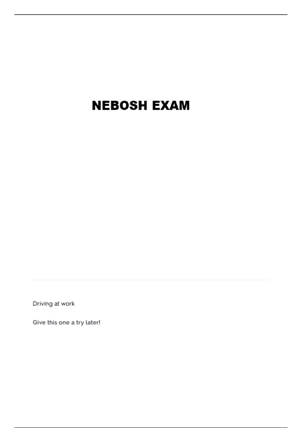 NEBOSH EXAMS WITH 100% CORRECT ANSWERS