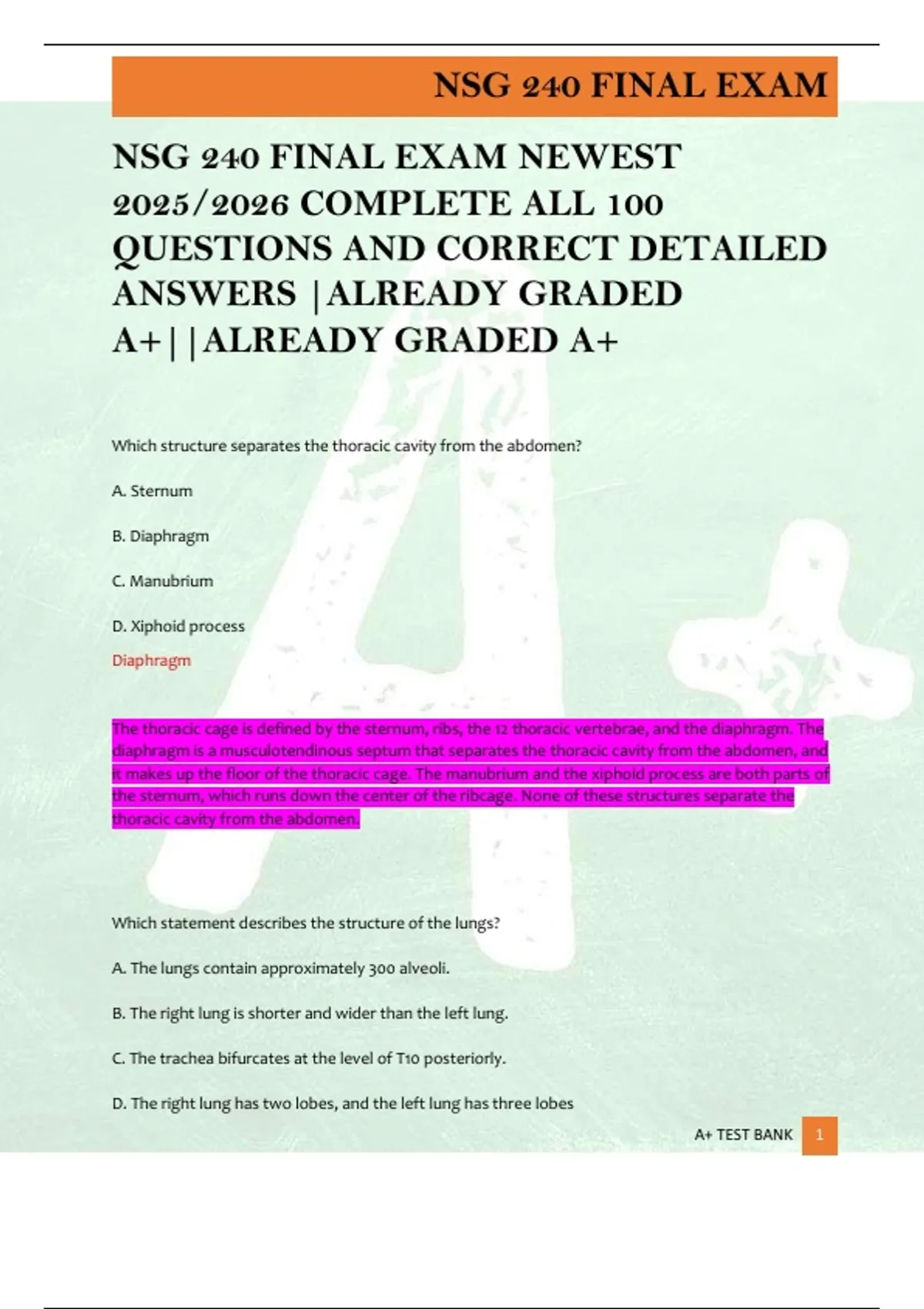 NSG 240 FINAL EXAM NEWEST 2025/2026 COMPLETE ALL 100 QUESTIONS AND CORRECT DETAILED ANSWERS |ALREADY GRADED A+||ALREADY GRADED A+
