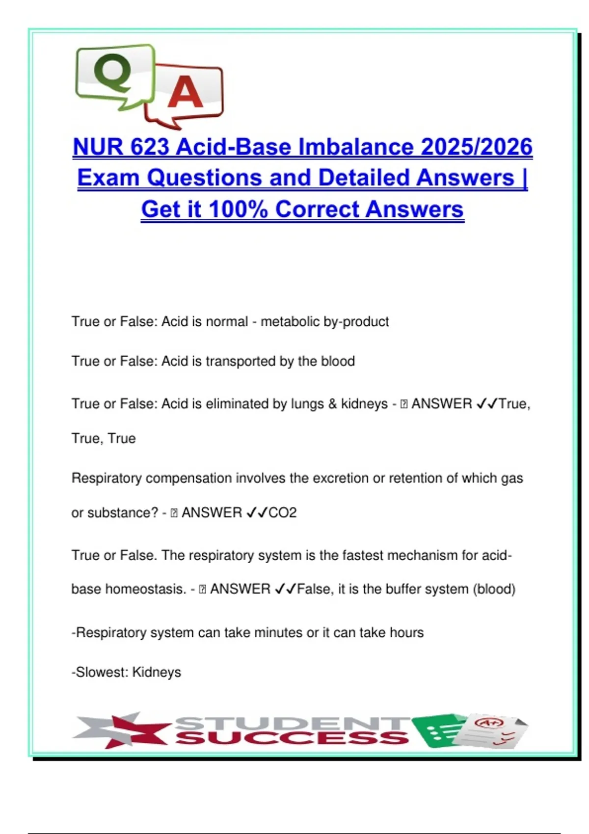 Acid-Base Imbalance – 52 Exam Questions with Answers | NUR 623 | Nursing | Respiratory & Metabolic Acidosis, Alkalosis, ABG Interpretation