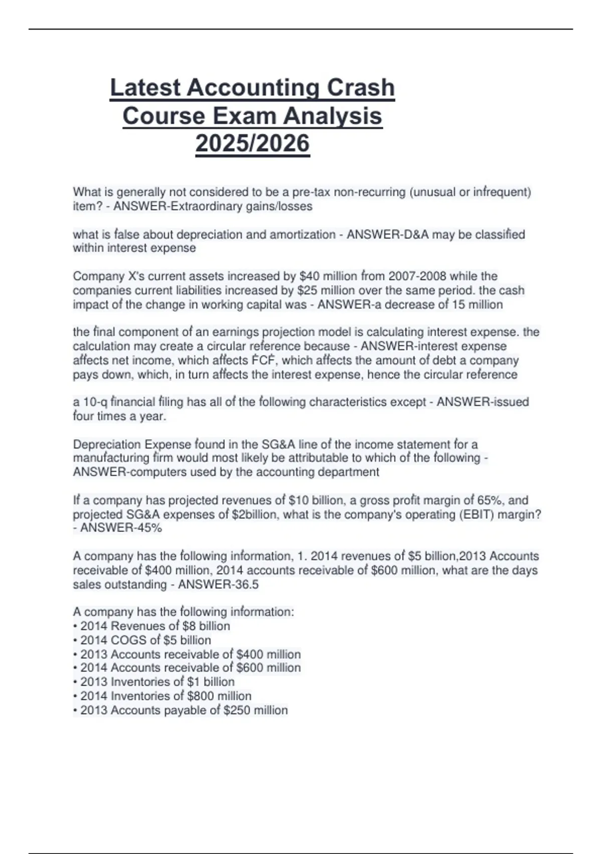 Latest Accounting Crash Course Exam Analysis 2025/2026 Financial Accounting Crash Course(Latest Version)2025/2026 Financial Accounting Crash Course Exam Review 2025/2026 Actual Accounting Crash Course Exam Practice Questions And Answers 2025/2026 2025/2026 Accounting Crash Course Exam Questions And Verified Answers Accounting Crash Course Practice