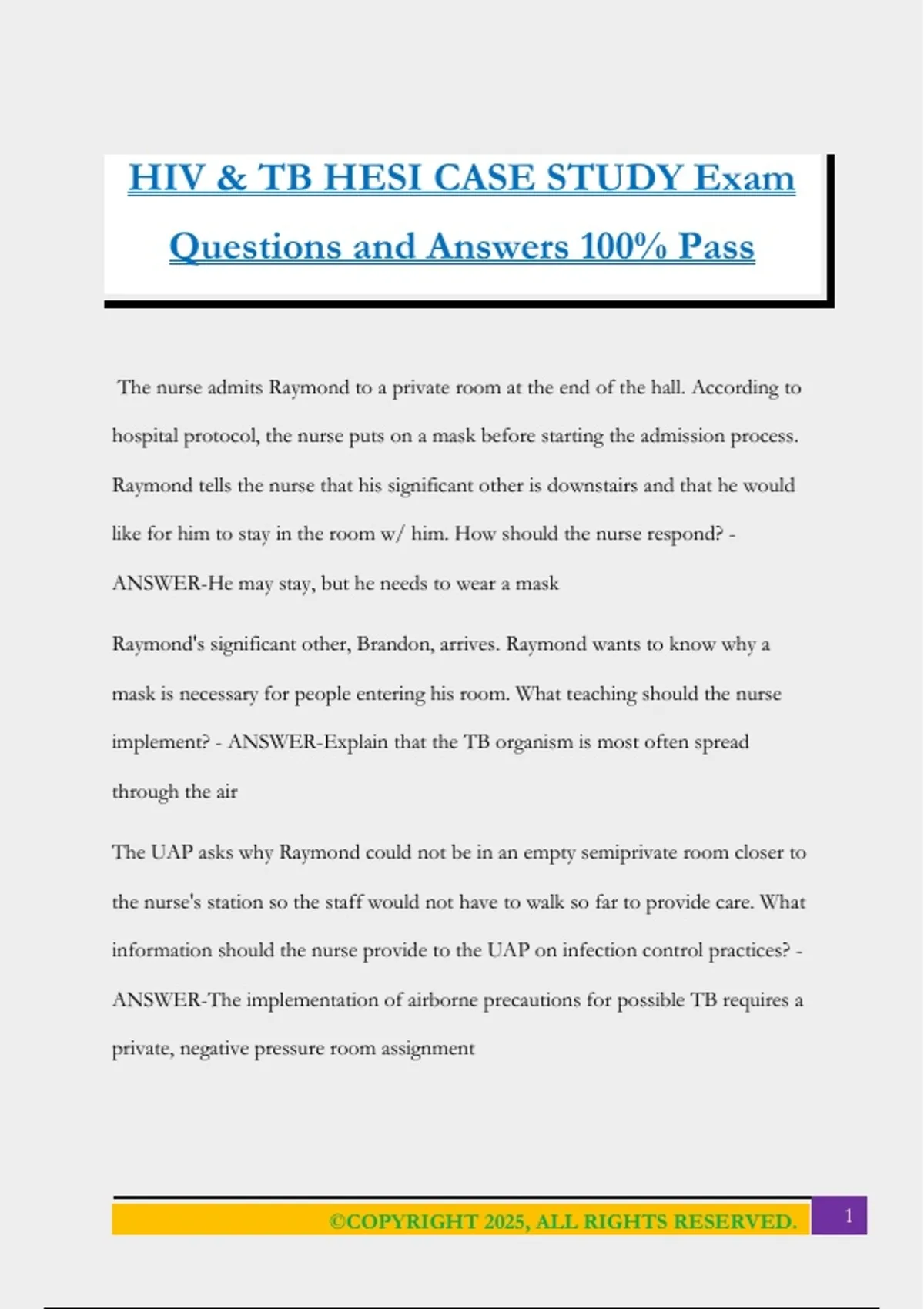 HIV & TB HESI CASE STUDY Exam Questions and Answers 100% Pass