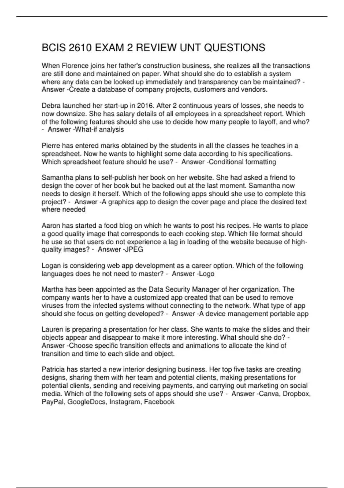BCIS 2610 EXAM 1 – 3 QUESTIONS & ANSWERS 2 Exam (elaborations) BCIS 2610 EXAM 1 QUESTIONS AND ANSWERS 3 Exam (elaborations) BCIS 2610 EXAM 1 QUESTIONS AND ANSWERS 4 Exam (elaborations) BCIS 2610 EXAM 1 REVIEW QUESTIONS & ANSWERS 5 Exam (elaborations) BCIS 2610 EXAM 1 UNT QUESTIONS & ANSWERS 6 Exam (elaborations) BCIS 2610 EXAM 2 QUESTIONS AND