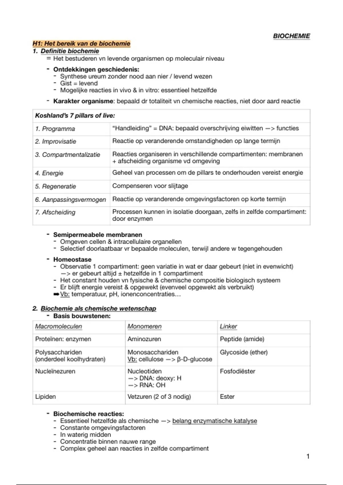 Samenvatting / Lesnotities Biochemie