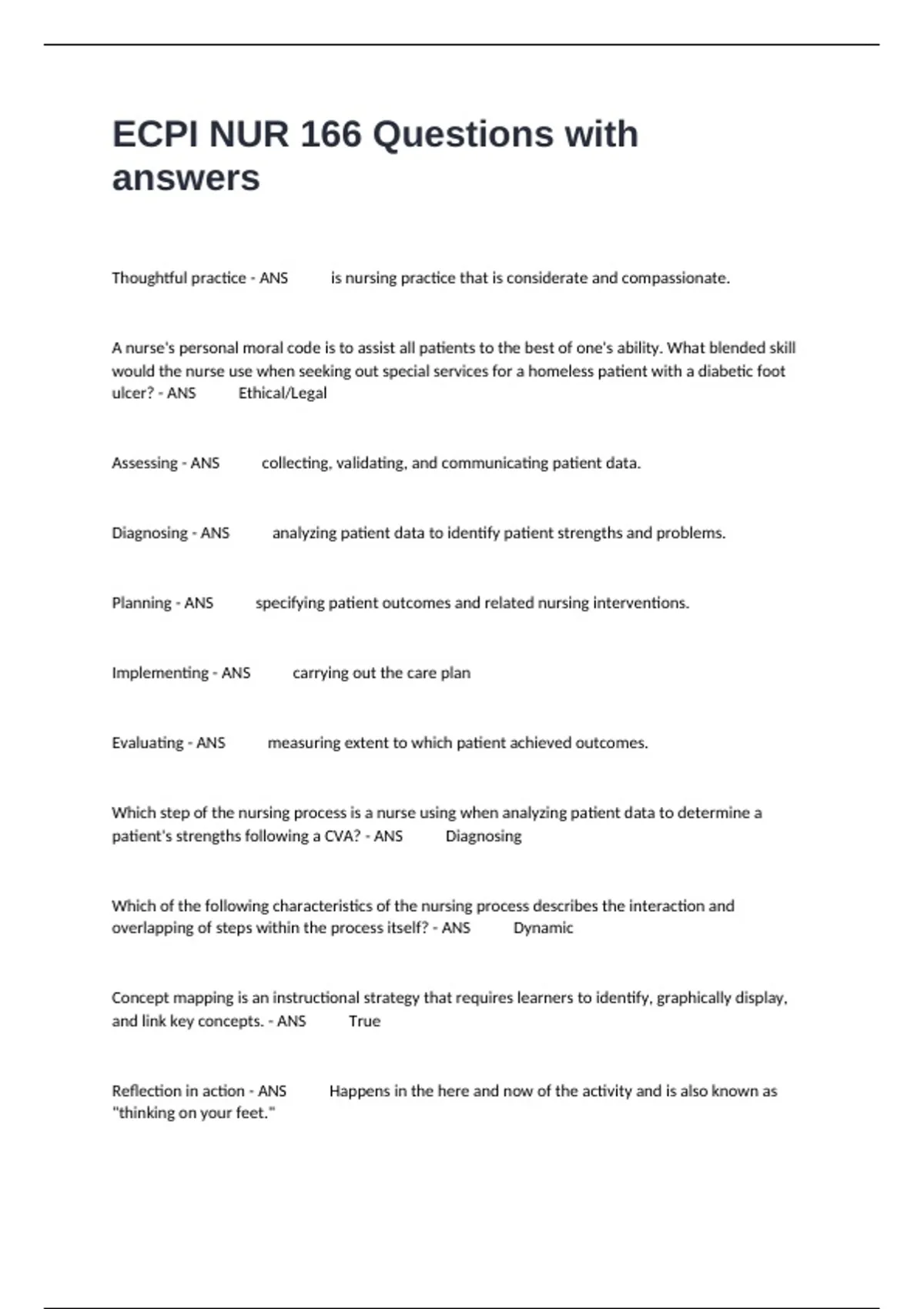 ECPI NUR 166 Questions with answers