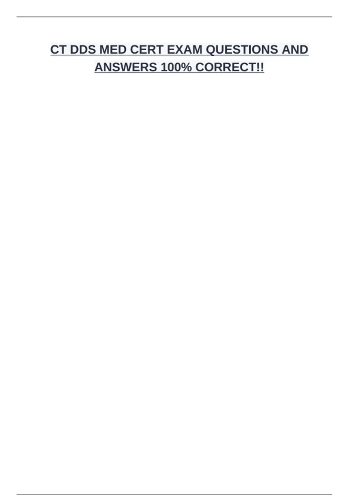 MED CERT STUDY FOR CT DDS FINAL EXAM BUNDLE(COMPETE PACKAGE DEAL)QUESTIONS AND ANSWERS 100% CORRECT