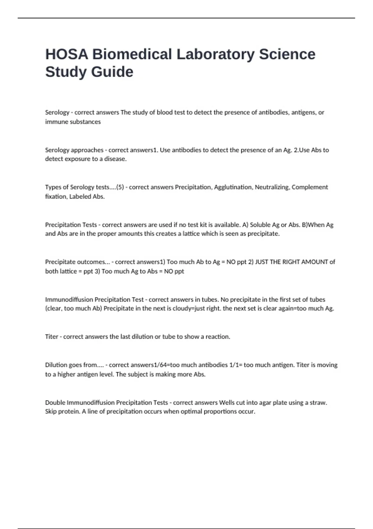 package deal of HOSA BIOMEDICAL Exam Bundle Correctly Answered.