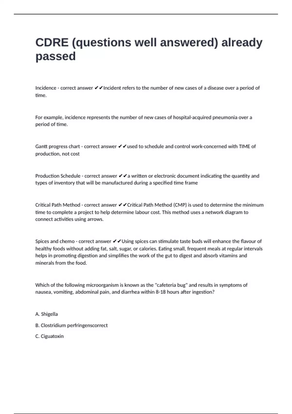 1 Exam (elaborations) CDRE- jurisprudence + professional practice questions n answers rated A+ passed 2 Exam (elaborations) Sample CDRE questions 2 well answered already passed 3 Exam (elaborations) Sample CDRE exam questions well answered graded A+ 4 Exam (elaborations) More CDRE questions with complete solutions graded A+ passed 5 Exam (elabo