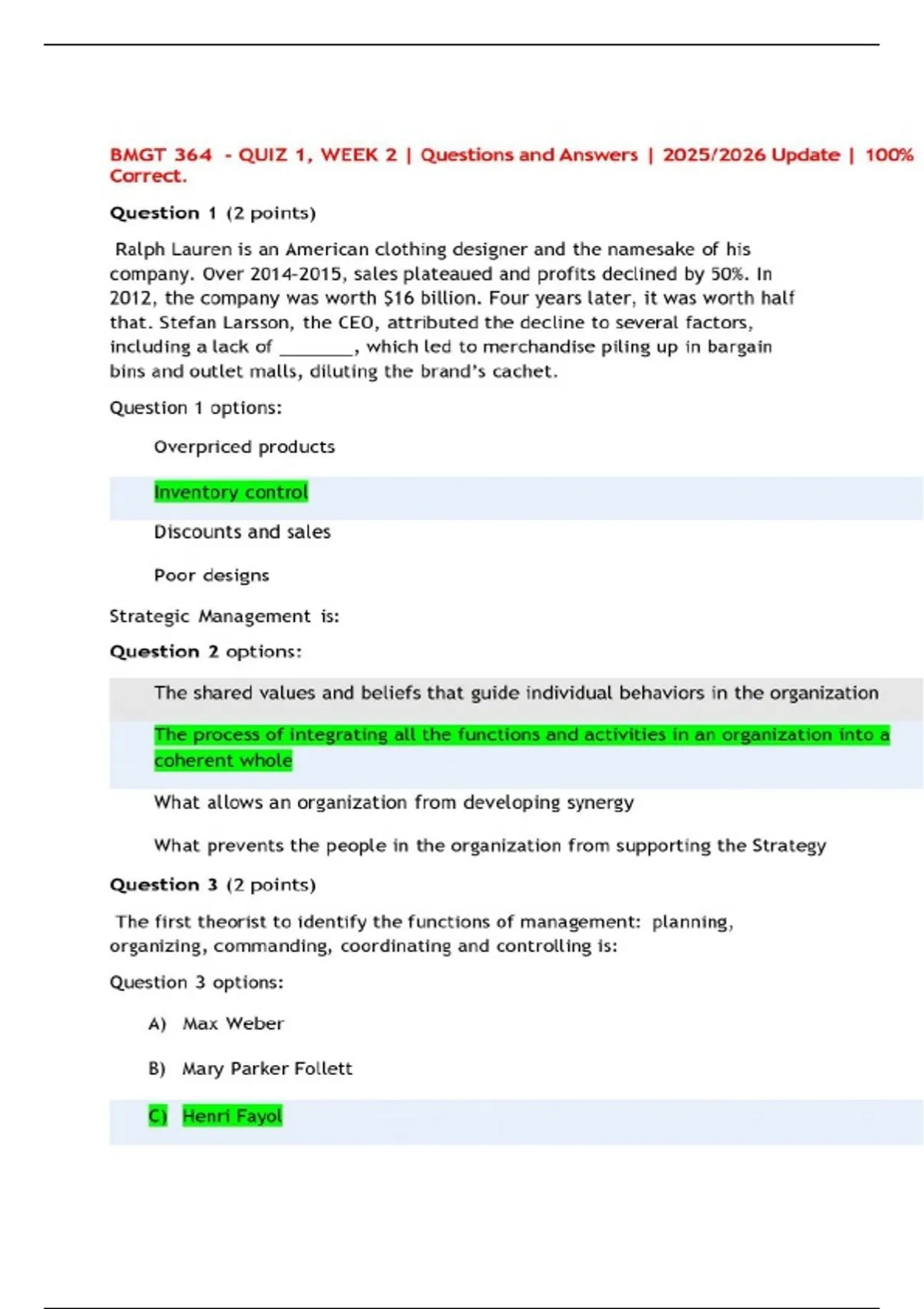 BMGT 364 Quiz 7 BMGT 364 Quiz 6 Week 7 | Questions and Answers BMGT 364 Week 6 Quiz 5 BMGT 364 QUIZ 4 | Questions and Answers BMGT 364 Week 3 Quiz | Questions and Answers BMGT 364 QUIZ 2 – WEEK 3 BMGT 364 - QUIZ 1, WEEK 2 | Questions and Answers