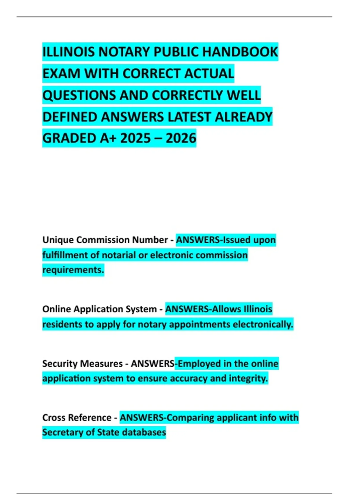 BUNDLE FOR ILLINOIS NOTARY EXAM LATEST BUNDLE FOR ILLINOIS NOTARY EXAM LATEST