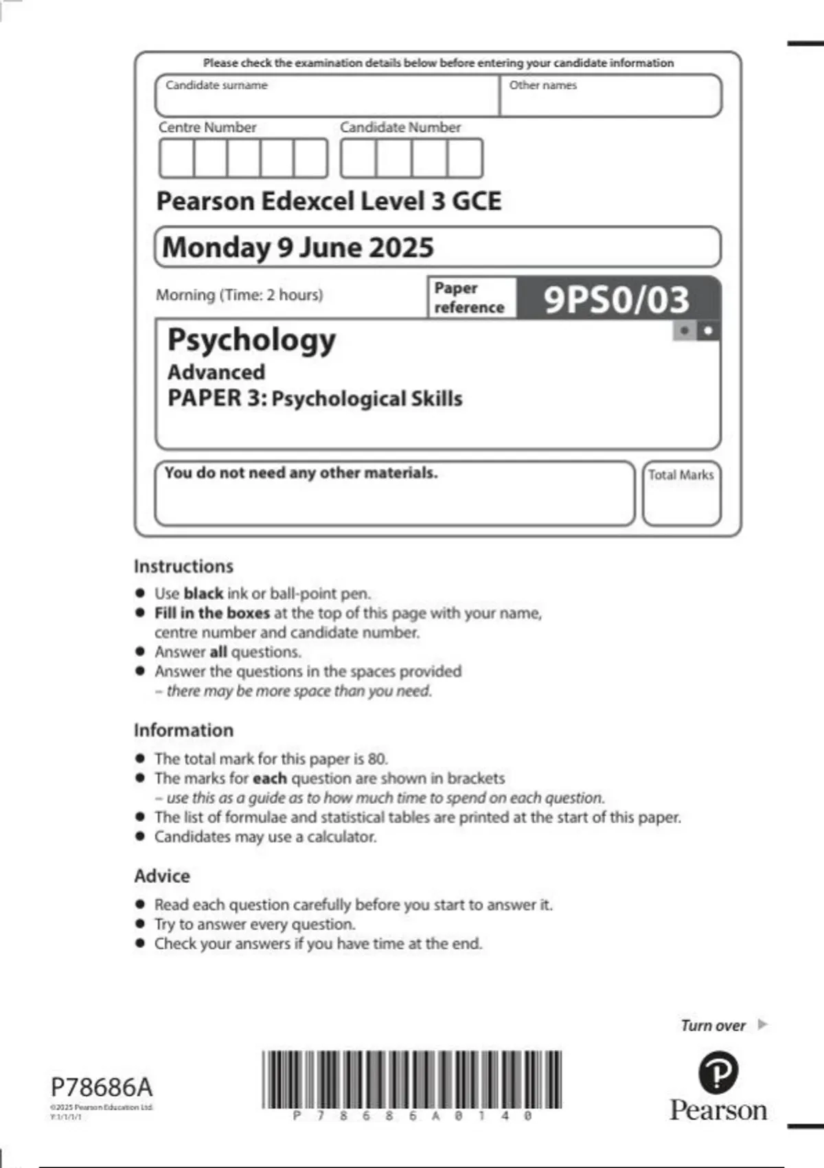 PEARSON EDEXCEL A LEVEL PSYCHOLOGY PAPER 3 JUNE 2025 FINAL QUESTION PAPER AND MARK SCHEME